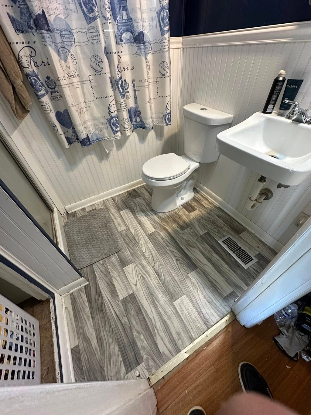 Step-by-step they have fixed a leak and installed beadboard on the laundry room ceiling, fixed the roof where the leak was coming from,